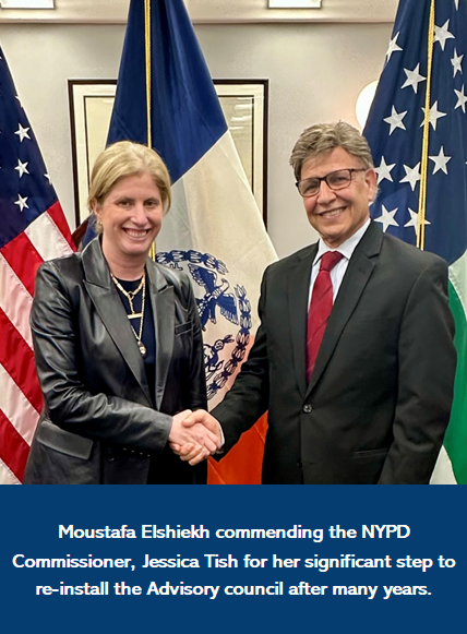 The NYPD Muslim Advisory Council was initiated by Moustafa Elshiekh and Detective Ahmed Nasser under the Bloomberg administration and installed by then NYPD Commissioner Raymond Kelly, recognizing the need for Muslim engagement after 9/11.Cordinated and facilitated by Mr. Maged Amin.